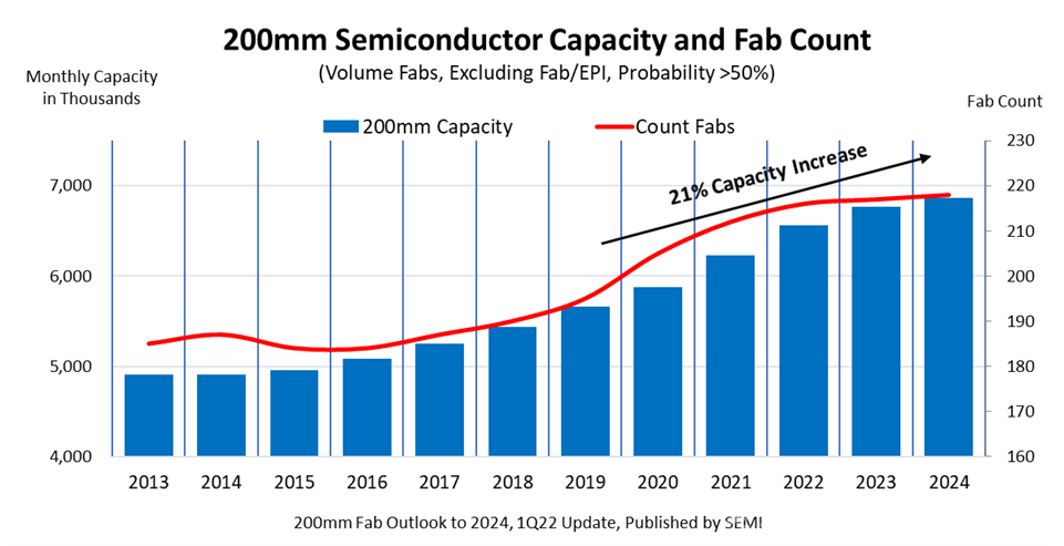 SEMI報告:200mm晶圓廠產(chǎn)能將激增21%,以緩解供需失衡