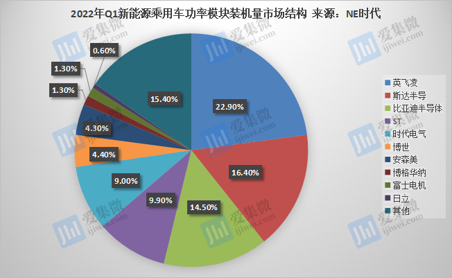 根據(jù)NE時(shí)代統(tǒng)計(jì)數(shù)據(jù),2022年Q1中國(guó)新能源乘用車功率模塊裝機(jī)量榜首仍是英飛凌,其以25.3萬(wàn)套位列行業(yè)第一,其后2-4名分別為斯達(dá)半導(dǎo)、比亞迪半導(dǎo)體、ST、時(shí)代電氣,裝機(jī)量分別為18.2萬(wàn)套、16.1萬(wàn)套、10.9萬(wàn)套、10萬(wàn)套。值得注意的是,斯達(dá)半導(dǎo)、比亞迪半導(dǎo)體及時(shí)代電氣三家本土企業(yè)三家本土企業(yè)同比增速分別為203.3%、209.6%、>500%,遠(yuǎn)高于英飛凌78.2%的同比增速;合計(jì)裝機(jī)量為44.3萬(wàn)套,合計(jì)市場(chǎng)份額已達(dá)39.9%。